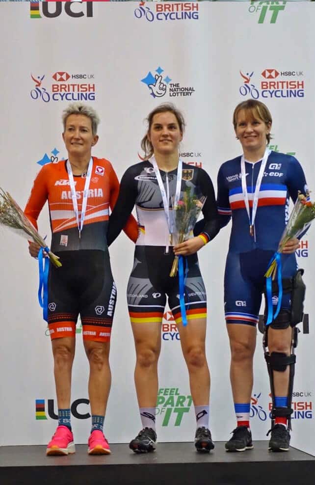 Vergangene Woche ging es mit einem kleinen Team aus Österreich zum ersten UCI Para-Cyling Europacup nach Manchester. Mit dabei waren Andreas Zirkl (C1) und unser Mechaniker Christian Ücker. Im Qualifikationsrennen über 3.000 Meter am Sonntagvormittag konnte ich mich gegen die Französin durchsetzen und das Finale erreichen. Am Nachmittag ging es dann ins Finale über 3.000 Meter in der Verfolgung gegen Maike Hausberger aus Deutschland, der ich mich geschlagen geben musste und so auf dem 2. Platz mit der Silbermedaille geehrt wurde. Andreas Zirkl wurde Dritter auf dieser Distanz. Im Scratch-Race, in dem die Klassen C1-C3 gemeinsam gewertet werden, gab es dann noch einen 4. Platz für mich, sowie einen 10. Platz auf der 500 Meter Distanz. Mein Fazit: Mit den Zeiten in den Einzeldisziplinen bin ich nicht zufrieden, aber ich bin ein sehr gutes Scratch-Race gefahren auch wenn das Ergebnis mit dem 4. Platz leider nur die Holzmedaille gab. Super Erfahrungen, Top-Training und wir haben wichtige Punkte für die Quotenplätze gesichert. #roadtotokyo2020